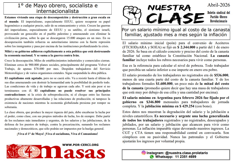 ¡Viva el 1° de Mayo! ¡Viva el socialismo, Viva el Comunismo!
